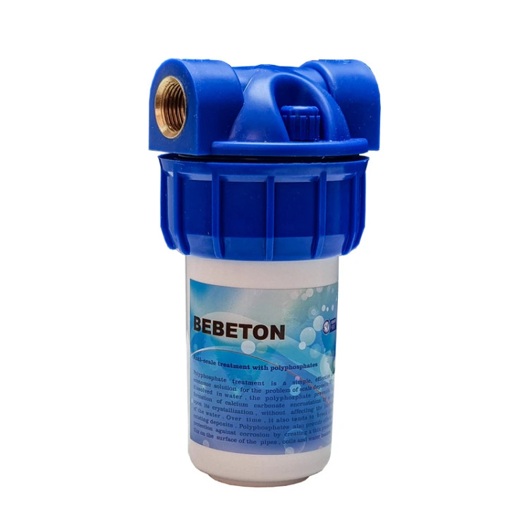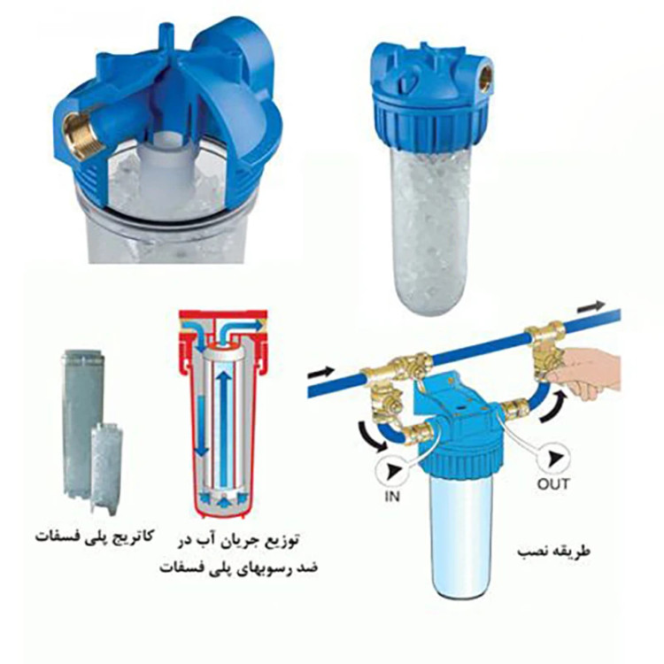 کاربرد فیلتر پلی فسفات -در سیستم های لوله کشی برای جلوگیری از خوردگی لوله هایی از جنس آهن , گالوانیزه , مس و سرب به کار می رود. -از فیلتر پلی فسفات برای محلول نگه داشتن املاح آب در دستگاه هایی مثل لباسشویی و ظرفشویی استفاده می شود. -قبل از ورودی دیگ بخارهای کوچک از این فیلتر برای جلوگیری از ایجاد رسوب استفاده می شود. -بعنوان رسوبگیر برای پکیج و آبگرمکن -بعنوان رسوبگیر در لباسشویی صنعتی و ظرفشویی صنعتی به کار می رود. -تصفیه آب ورودی ساختمان -تصفیه آب استخر و آب منبع ذخیره آب -بعد از گذشت ۶ ماه الی ۱ سال زمانی که تمام کریستال های پلی فسفات در آب حل شود , باقیمانده آن به شکل خمیر در می آید . نشان دهنده اتمام فیلتر است. بنابراین می توانید. فیلتر هایی که برای آبگرمکن و پکیج های خانگی استفاده می شود