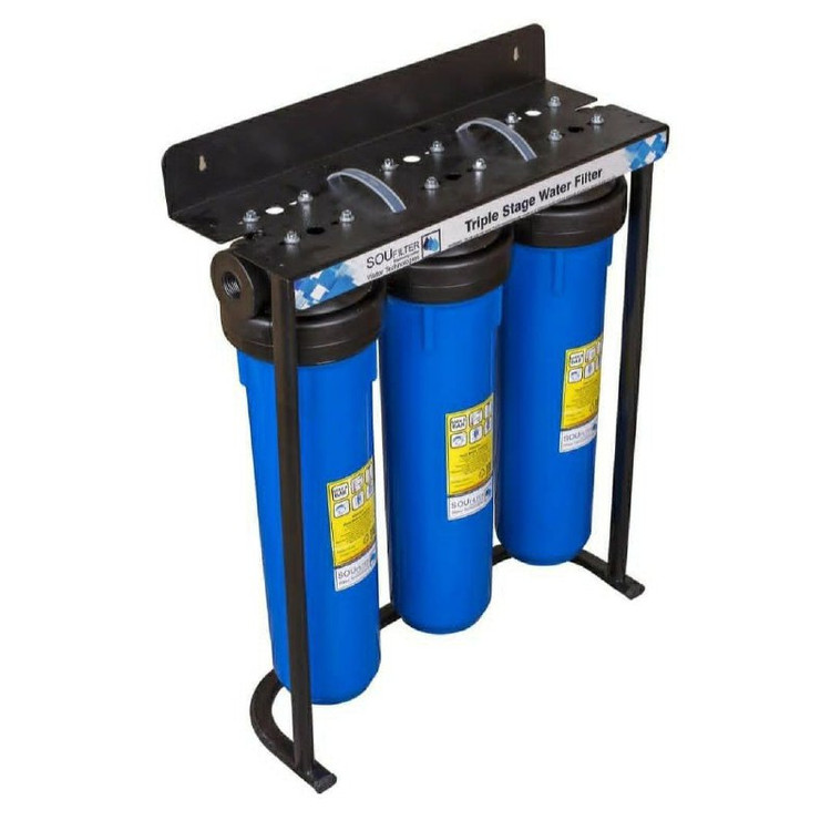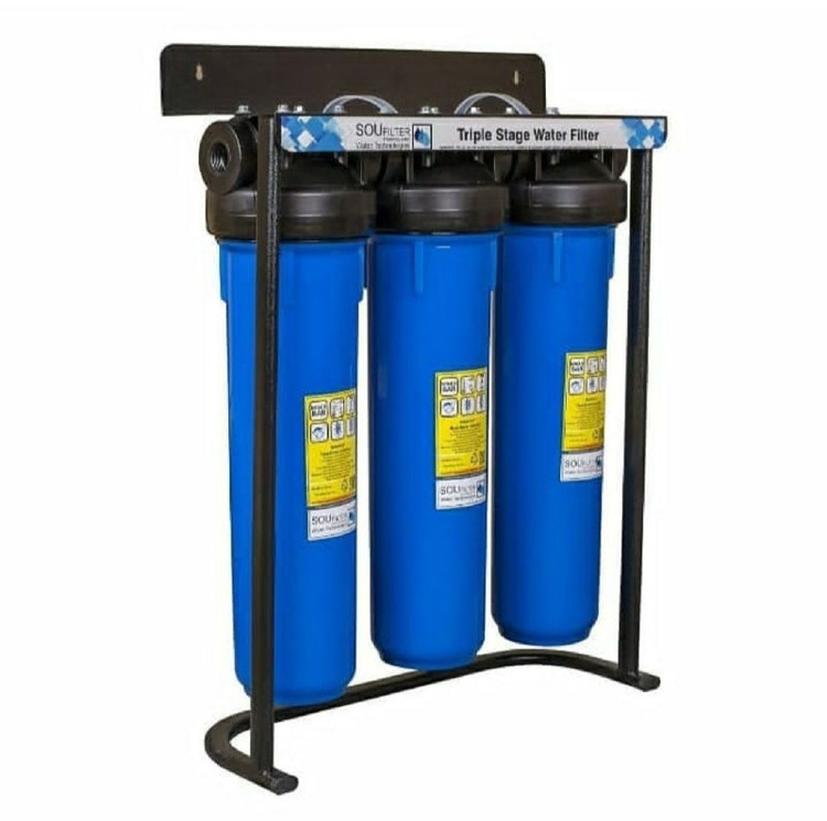 پیش تصفیه سه مرحله جامبو سوفیلتر به عنوان پیش تصفیه آب در مسیر لوله آب قرار می گیرد و با استفاده از فیلتر الیافی درون آن گل و لای، شن و ماسه و ذرات معلق را تا 5 میکرون تصفیه می کند. این محصول به عنوان پیش تصفیه آب ساختمان، ویلا، کارگاه و هر جایی که نیاز به تصفیه ذرات معلق آب ورودی باشد به کار میرود. ارتفاع فیلتر درون این محصول 20 اینچ و پورت ورودی و خروجی آن از جنس پلاستیک و 1 اینچ (لوله 3) می باشد .این پکیج شامل یک مجموعه پیش تصفیه 3 مرحله ، 2 عدد فیلتر الیافی و یک عدد فیلتر کربن میباشد