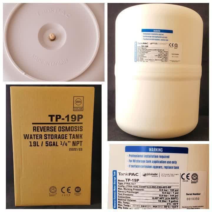 مخزن ذخیره تانک پک TANKPAC استیل تائیدیه ها: CE , FDA , WaterQuality ظرفیت: 5 گالن معادل 19 لیتر ساخت و مونتاژ: تایوان قابلیت استفاده برای تمام انواع دستگاه تصفیه آب